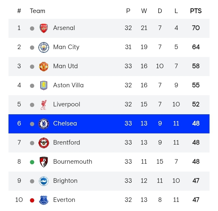 Chelsea are currently sixth with 48 points as they prepare for a more challenging fixture against Brighton on Tuesday.